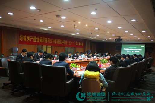 2014年4月22日,绿城建设本部2014年度“五一"员工座谈会在绿城•杭州黄龙世纪广场A座10楼1号会议室召开。会议由绿城建设总裁许峰主持,副总裁刘虹、裘胜强,绿城集团工会主席蒋迅雯,公司本部各部门负责人,以及员工代表共35人参加此次座谈会。