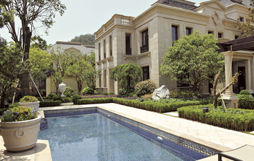蓝城法式排屋借鉴了法国古典主义立面构图,采用纵横三段式,几何感强烈,轴线明确,主从清晰。底层厚重,中层是虚实相映的柱廊,顶部是水平厚檐。细节处理上采用了古典柱式、山花、线角等,制作工艺精细考究。在立面处理上多采用法国古典主义建筑符号,例如三段式立面、古典柱式、坡屋顶、窗套、老虎窗等。